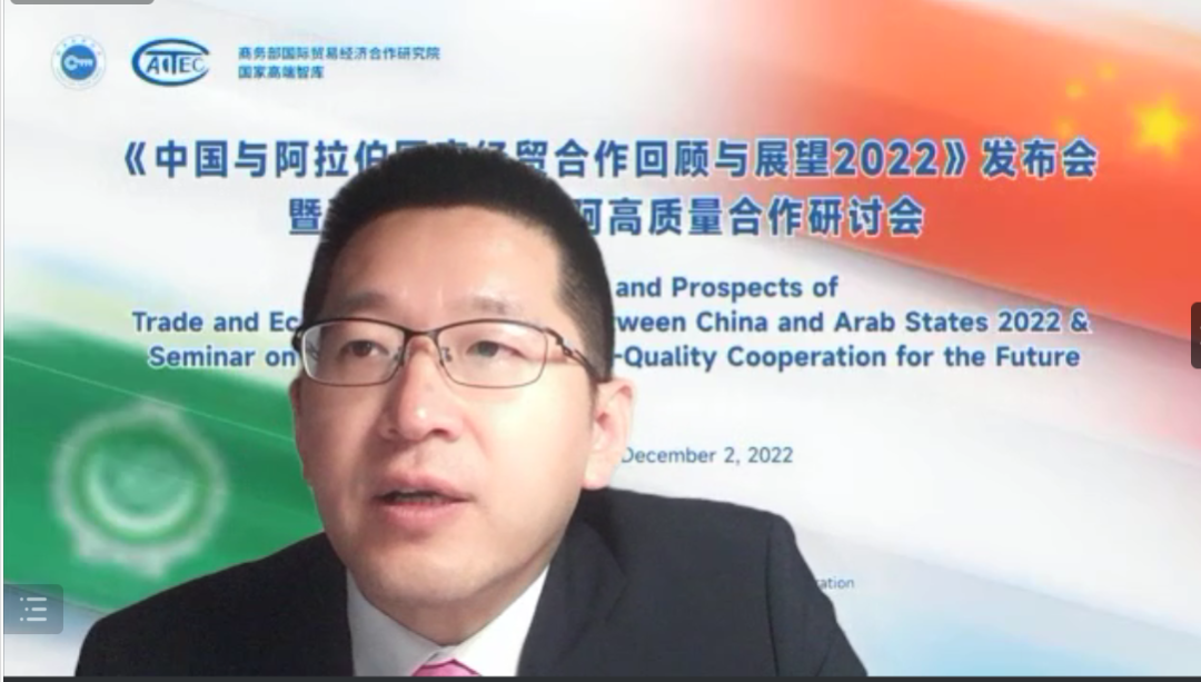 On December 2, 2022, the "Review and Outlook of China Arab Economic and Trade Cooperation 2022" conference and future oriented China Arab high-quality cooperation seminar "hosted by the Research Institute of International Trade and Economic Cooperation of the Ministry of Commerce (hereinafter referred to as the Research Institute of the Ministry of Commerce) was held in the form of online video conference.