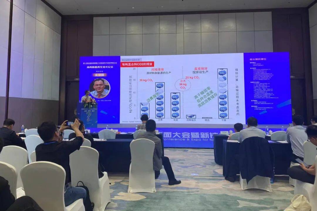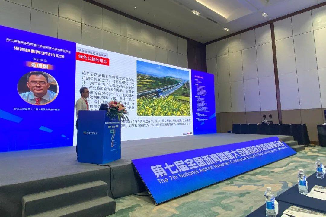 在沥青路面再生技术论坛上,安迈工程设备(上海)有限公司技术经理金创国以《沥青搅拌站在绿色公路建设与养护中的最新应用》为题,分享了安迈为可持续发展问题提供的解决方案,包括:通过先进技术使沥青搅拌站的废气、粉尘、噪音、气味等符合严苛的环保法规要求,用高比例再生工艺实现真正的旧料循环利用(而非降级使用),借助低温拌和技术减少碳排放与能耗,还有推广以绿色清洁能源为燃料的燃烧器等。