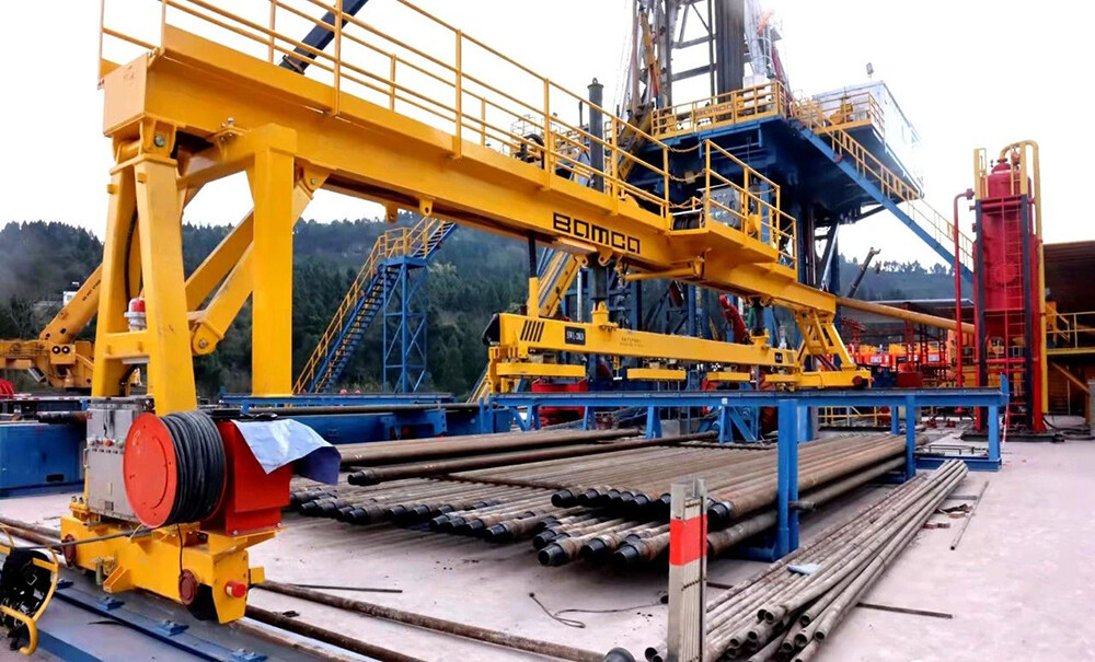 The pipe support manipulator adopts sinking or L-shaped offset, which can completely avoid the channel of the pipe stand when it is not working. One-button automatic and precise discharge is realized through remote control, which solves the problem of relying on manual pushing and supporting operations for the well crew to stand up and throw single roots on site, and greatly reduces the labor intensity of manual operations.