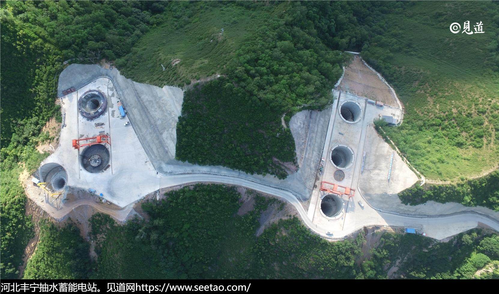 滦河发源于河北省承德市丰宁满族自治县,经过连绵起伏的燕山,水流中蕴含着巨大能量。四岔口乡永利村正位于接坝地区,在这里,华北平原陡然升高至内蒙古高原,周围高山耸立、峰岭环抱,形成了一个天然大库盆,是难得的抽水蓄能电站建设之地。上世纪90年代,当地便在永利村辖区滦河干流上拦河筑坝,建设水库,蓄水发电。如今,在该水库上方的山谷中央,又建起一个上水库。上下两个水库落差400多米,通过在山体深处修建的双向水道相连。这便是于2013年开工建设的国网新源河北丰宁抽水蓄能电站。