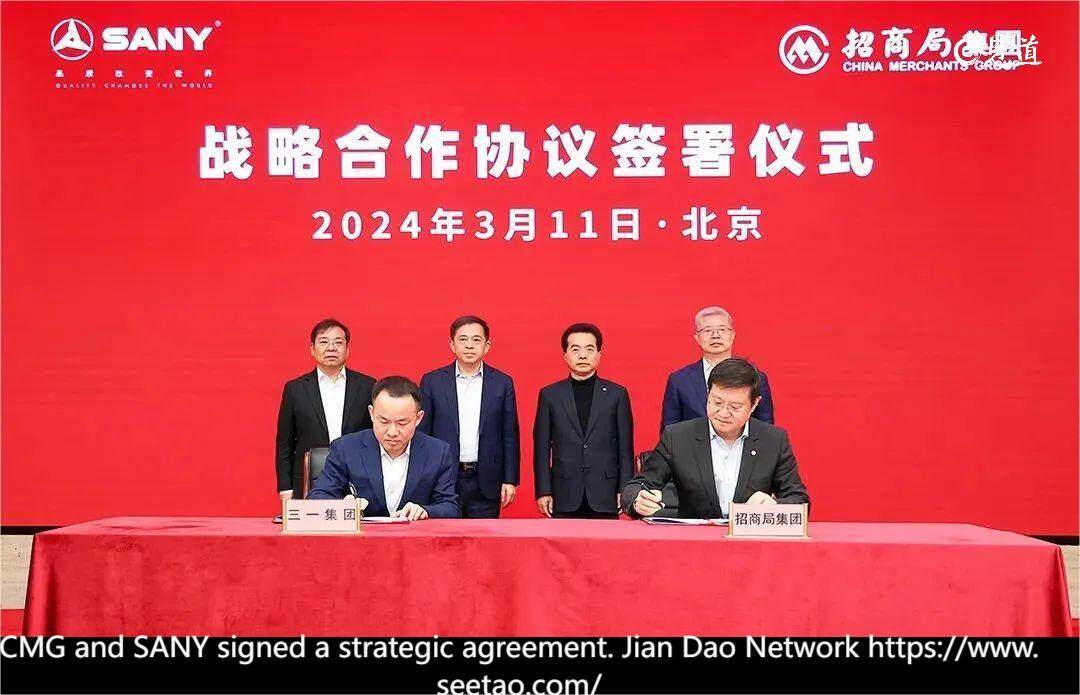 China Merchants Group and Sany Group have officially established a strategic cooperation relationship. Miao Jianmin, Chairman of China Merchants Group, and Xiang Wenbo, rotating Chairman of Sany Group and Chairman of Sany Heavy Industry, attended the signing ceremony together.