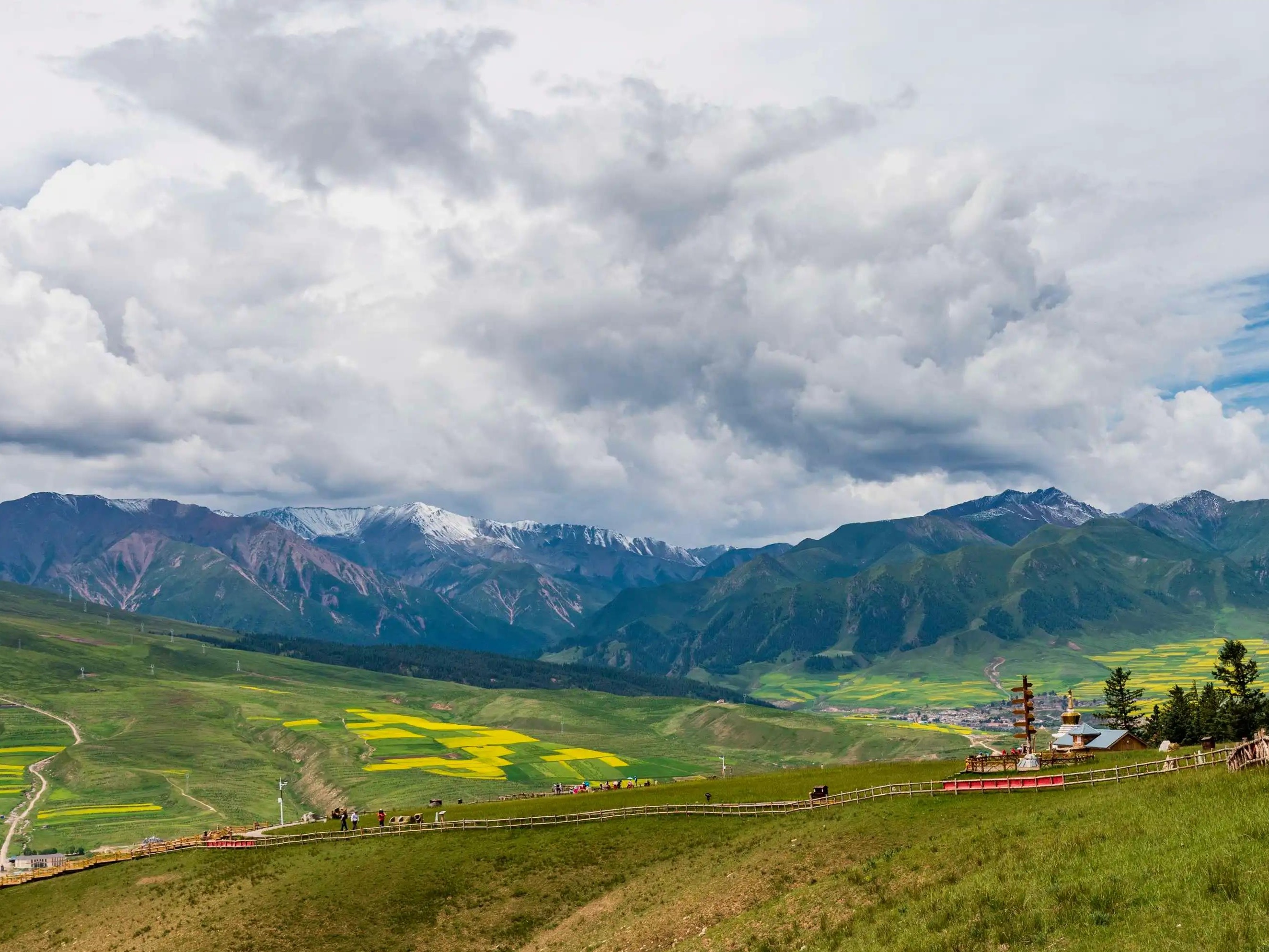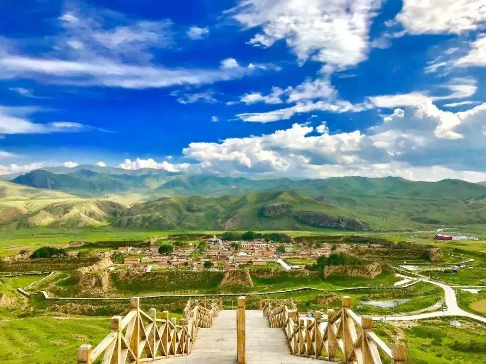 The ancient city is located on the northeastern edge of the Qinghai-Tibet Plateau, with an altitude of 3000-3800 meters. It has a cold and humid climate. The plateau has obvious continental climate characteristics. The average annual rainfall is 516 mm and the annual sunshine time is 2,296 hours. The Octagonal City is part of the Ganga Secret Realm. The Ganga Secret Realm is centered on Ganga Town, Xiahe County, southwestern Gansu, with the octagonal ancient city, the ancient Bon temple Zuohai Temple, the Baishiya Temple, and Dalijia Mountain as the core, forming the cliff wall , Grasslands, plateau lakes, ancient cities, ancient temples, stone forests, canyons, prehistoric caves are a unique area. Here is a typical plateau grassland, an ideal natural pasture, surrounded by mountains. Every summer, the entire grassland is green and full of flowers, and the Yangqu River and Yangla River meander and flow. On the flat land, hills and terraces around the ancient city, there are traces of ancient abandoned terraced fields.